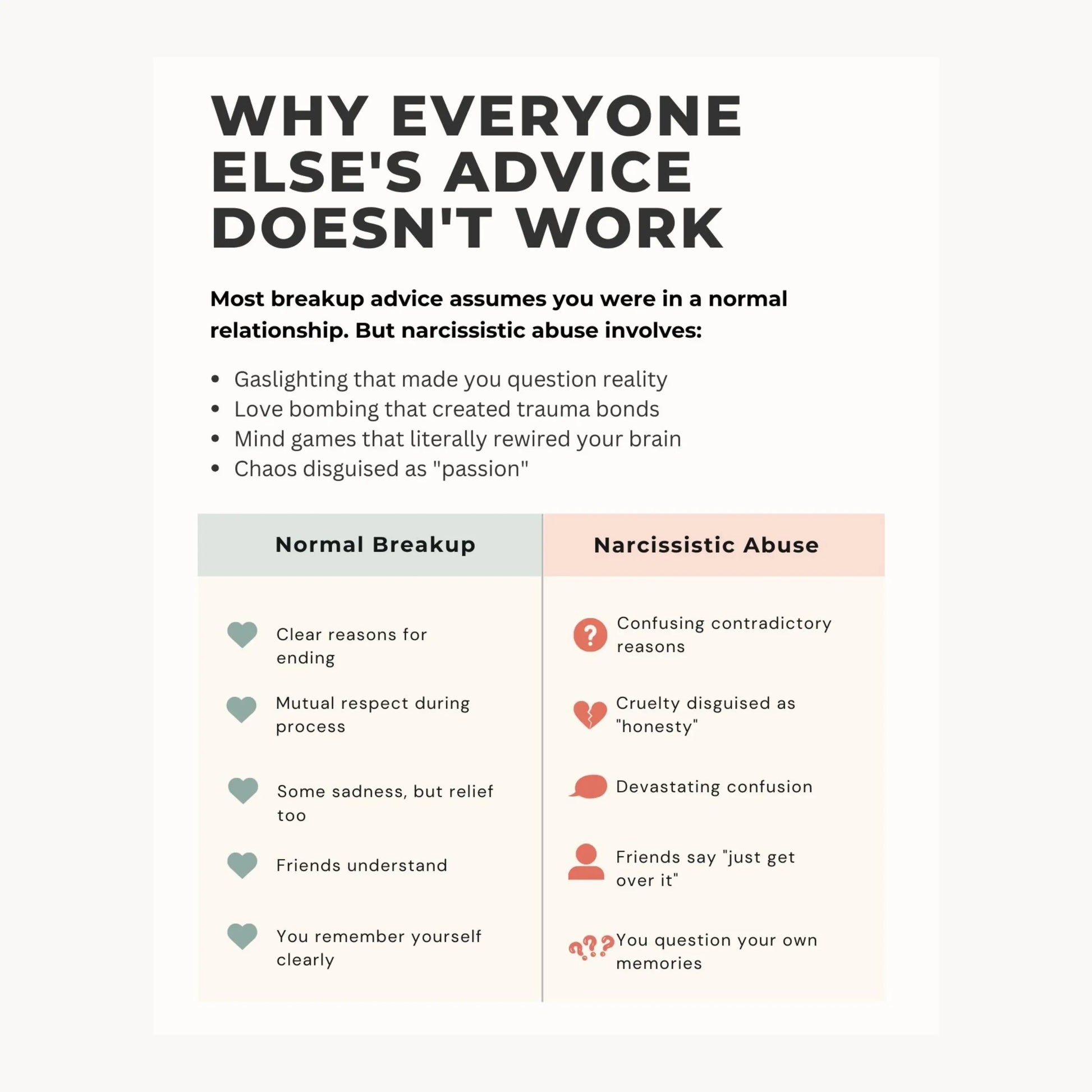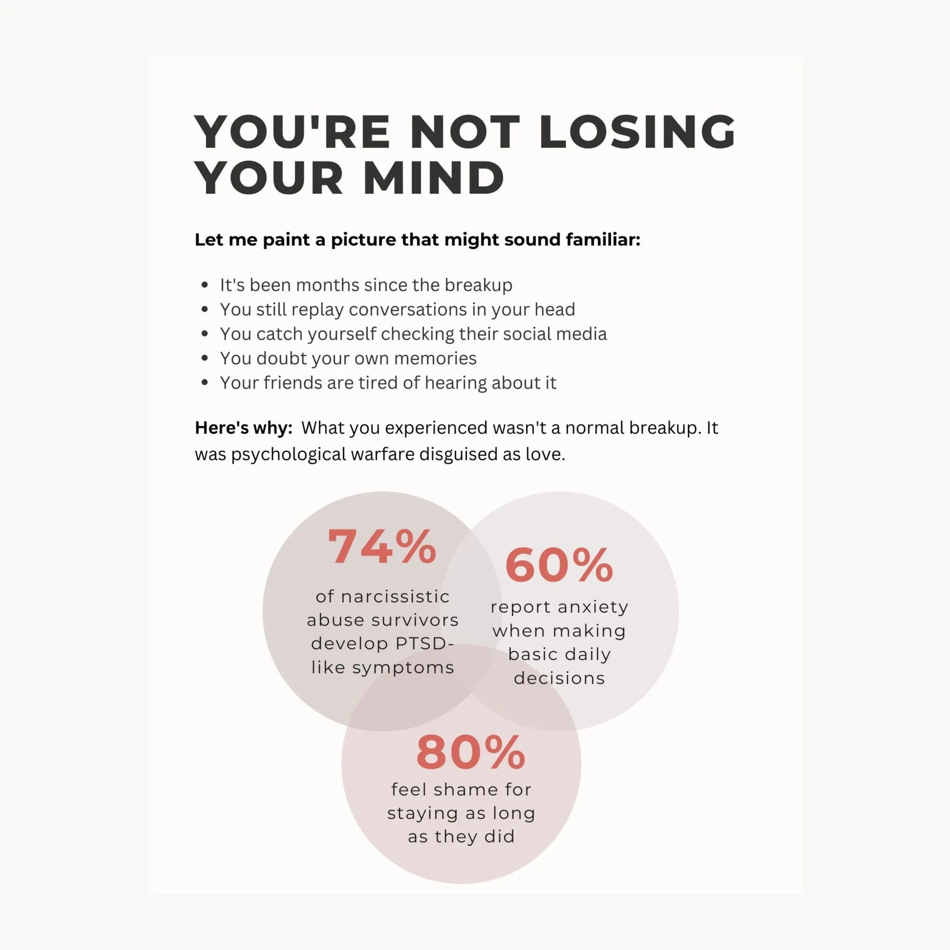 "No matter how many podcasts or therapists I tried, I still felt hooked on him. These steps gave me something practical I could actually do each day, not just “wait it out.” I finally feel like I’m moving forward."