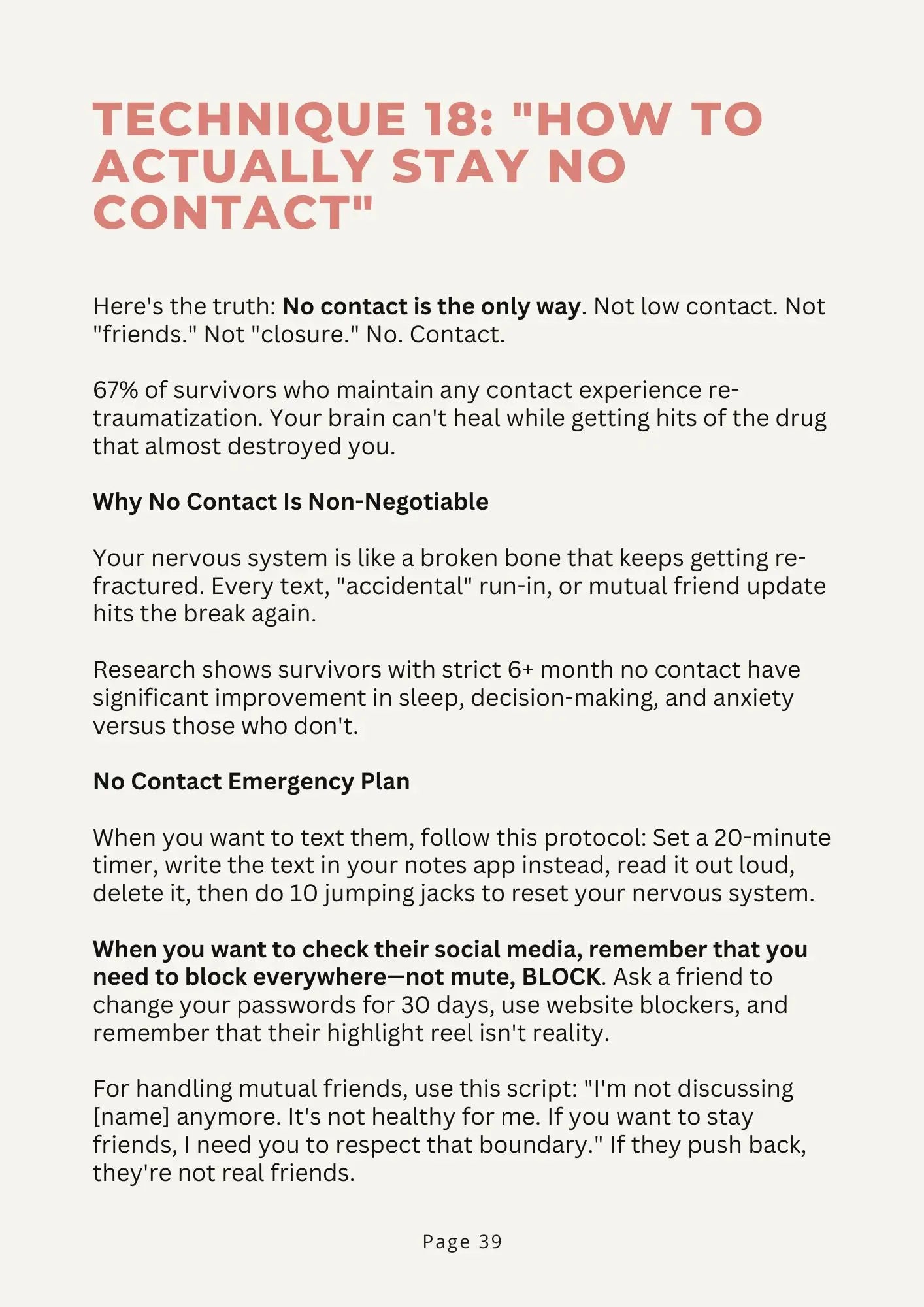 No fluff. Just step-by-step tools to calm your nervous system, cut the trauma bond, and make No Contact stick — even on the hardest days.