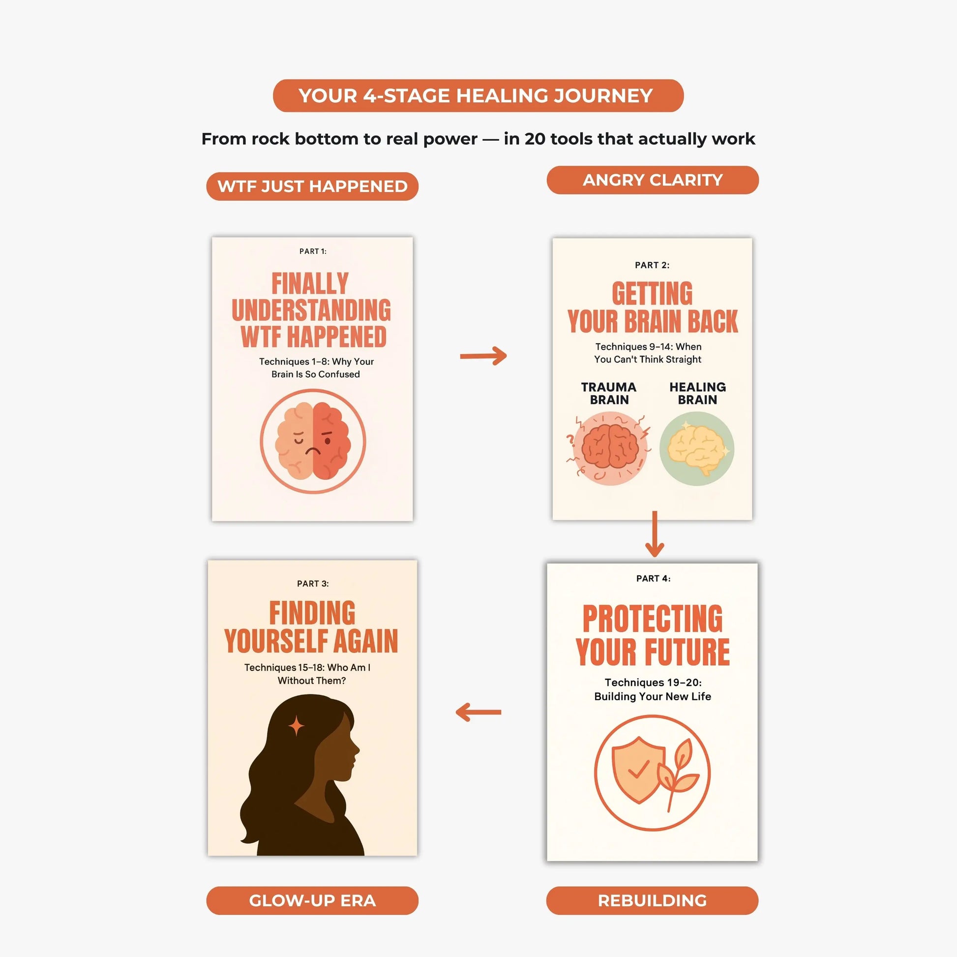 Each one is trauma-informed, practical, and fast to use. Inside you’ll find techniques to stop obsessive thoughts, break trauma bonds, and reset your nervous system — so you finally feel calm, in control, and free again.