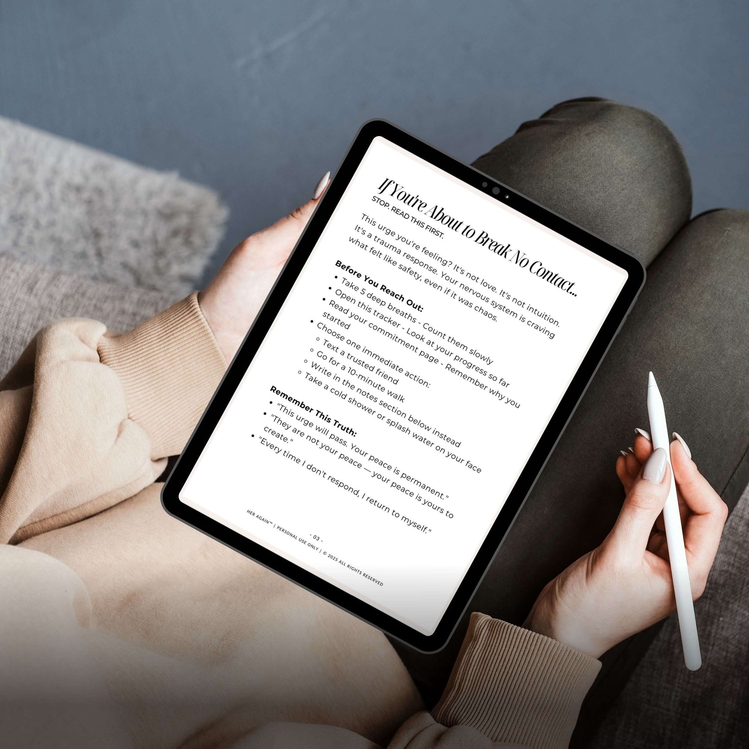 It’s a trauma-informed digital tracker designed to help you stay no-contact for 30 days — with daily prompts, emotional check-ins, and emergency support pages.