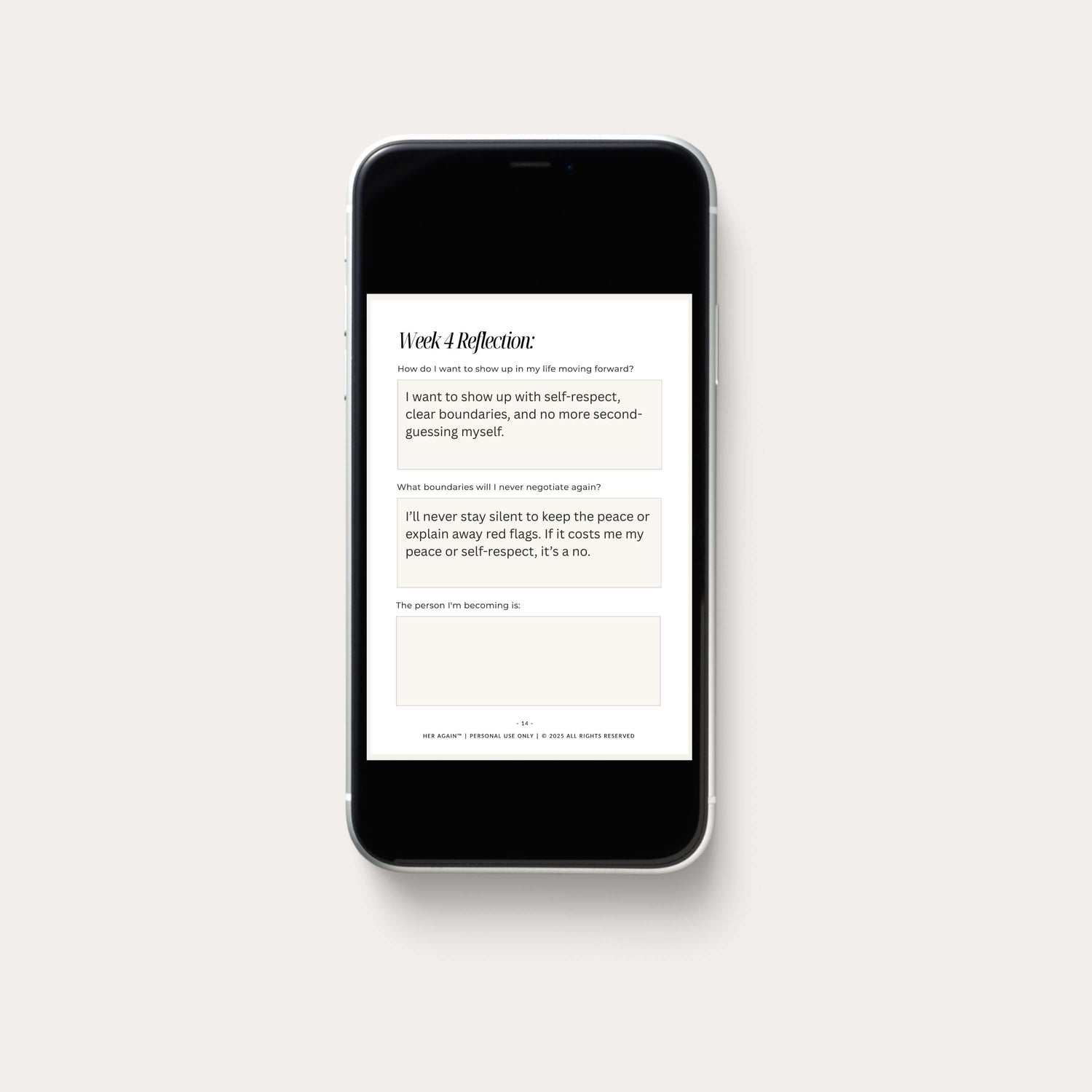 End each week with a reflection. At the end of 30 days, you’ll look back at your growth — and forward with unshakable boundaries.